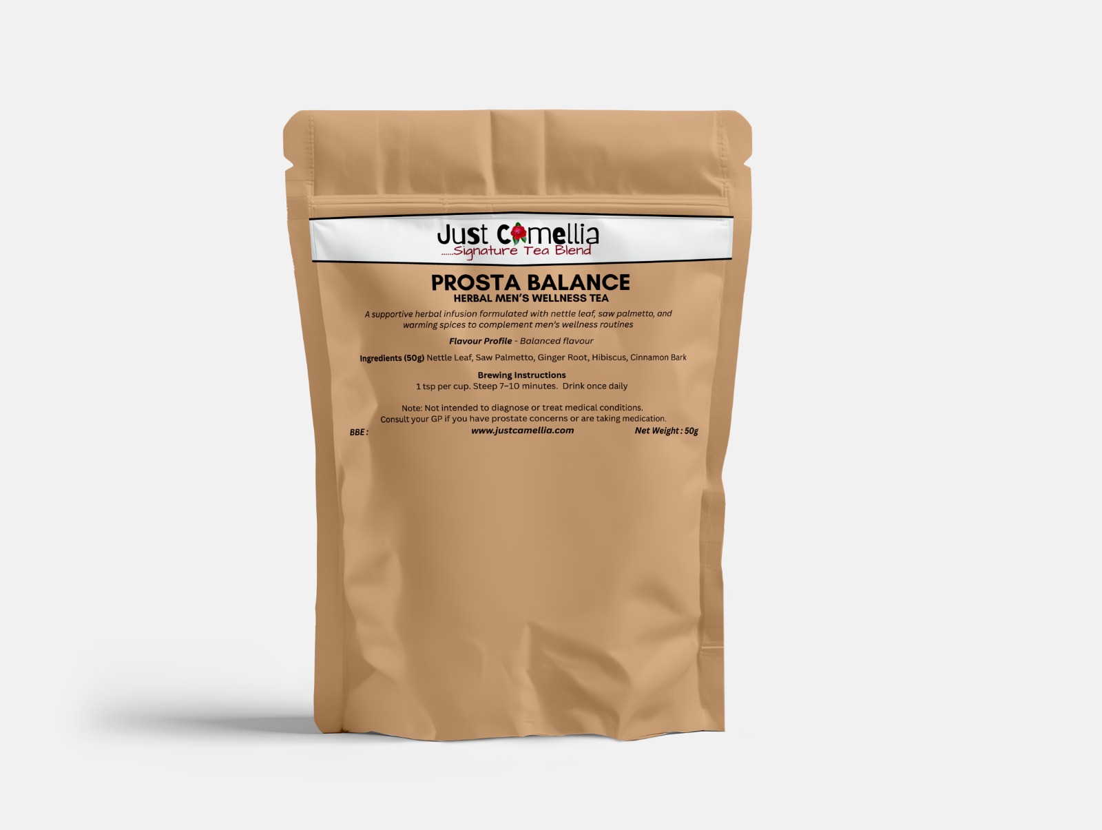 Prosta Balance is a carefully crafted herbal infusion designed to support urinary comfort and everyday prostate-focused wellness. Blended with nettle leaf and saw palmetto berries, herbs traditionally used in men’s wellness routines, this gentle infusion helps promote internal balance and comfort as part of a healthy lifestyle.